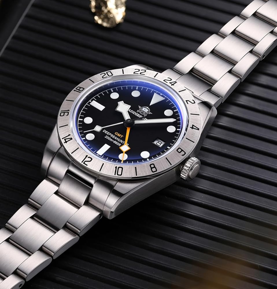 El Addiesdive AD2035 GMT es un reloj tool watch de alto rendimiento, inspirado en el legendario diseño del Tudor Black Bay Pro, que combina estética clásica con prestaciones modernas para el uso diario y la exploración.
