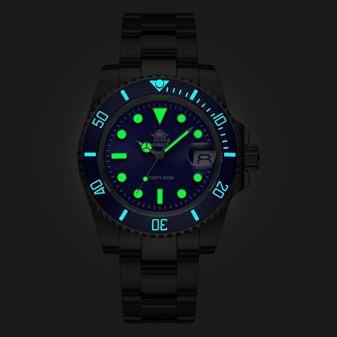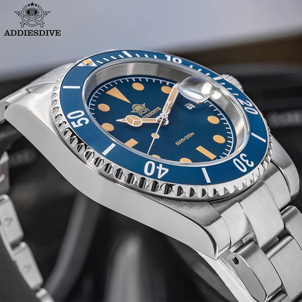En el interior del Addiesdive Submariner late un movimiento japonés Miyota 2115, reconocido por su precisión y bajo mantenimiento. La esfera azul con acabado vintage y el cristal mineral convexo reflejan elegancia, mientras que los índices y agujas luminiscentes aseguran excelente visibilidad bajo el agua o en entornos con poca luz.