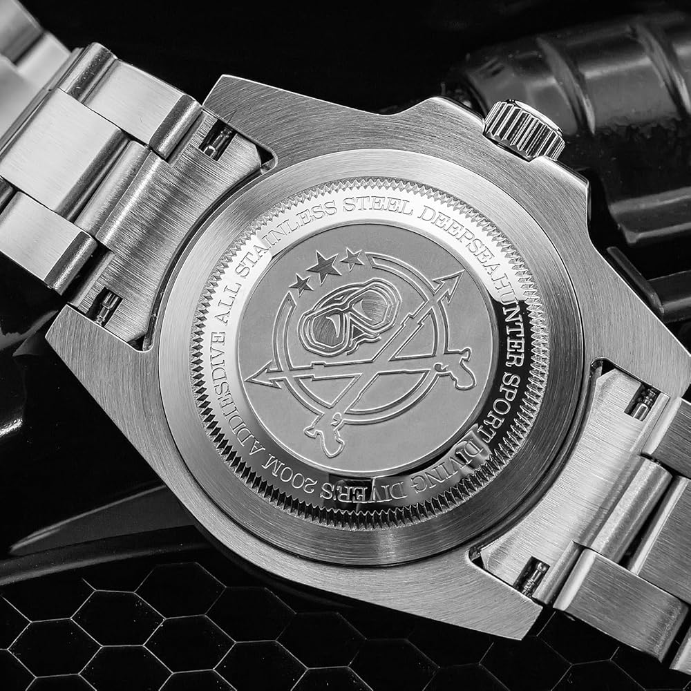 Su caja y brazalete de acero inoxidable 316L garantizan durabilidad y una sensación sólida en la muñeca. El bisel giratorio unidireccional con inserto de cerámica ofrece resistencia superior a los arañazos y un brillo que realza su estilo vintage. Cada detalle, desde la corona atornillada hasta el acabado pulido, ha sido cuidadosamente diseñado para transmitir calidad y fiabilidad.